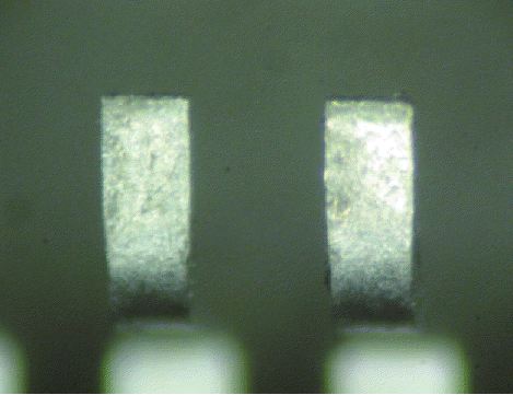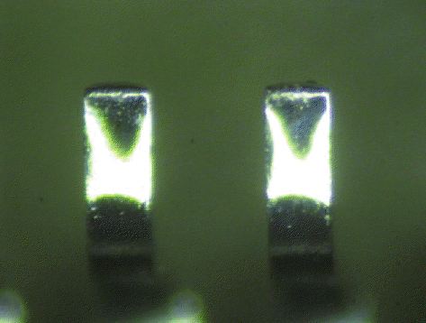 Это не метод обнаружения подделки, поскольку окисление происходит естественным путем; однако это серьезная проблема для функциональности и особенно распространена в жарком и влажном климате, например в Юго-Восточной Азии и южных штатах Северной Америки. Общий стандарт J-STD-002 определяет методы испытаний и критерии принятия / отклонения для сквозных отверстий, поверхностного монтажа и устройств BGA. Для устройств с поверхностным монтажом без BGA применяется метод «окунуться и посмотреть», а недавно в наш набор услуг был включен «тест керамической пластины» для устройств с BGA. Устройства, которые поставляются в несоответствующей упаковке, приемлемой упаковке, но старше одного года или имеют загрязнения на контактах, рекомендуются для тестирования паяемости.